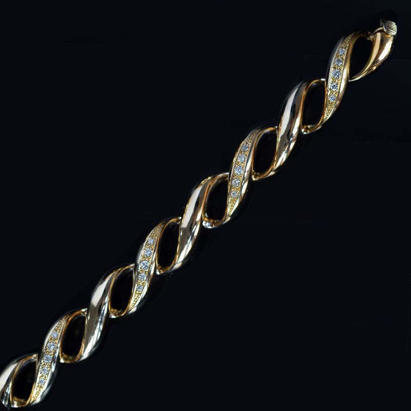 14K gouden armband met 25 briljantgeslepen diamanten met een totaalgewicht van circa 1 karaat. Waarschijnlijk uit Pforzheim.