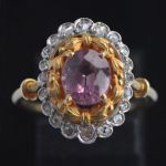 Klassiek geïnspireerde fraai gedetailleerde ring met Rubelliet en diamant.