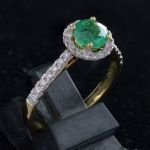 De lente is in de lucht met onze met gekleurde edelstenen en diamanten Halo-collectie. Deze ring is gemaakt van 18 karaat geelgoud en voorzien van een natuurlijke ø 6 mm groene Smaragd met gewicht van 0,80 ct deze wordt omzoomt door 30 mooie briljant geslepen Kimberly gecertificeerde natuurlijke diamanten met een G-H kleur en een Si zuiverheid, totaal gewicht van 0,32 ct. Op verzoek kunnen wij deze ring ook in wit-, geel- of roségoud maken.